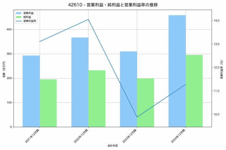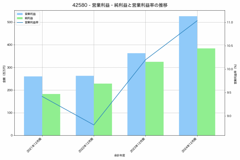 アジアクエストの2024年12月期の営業利益は458百万円、営業利益率は11.3%と前年比148百万円増、営業利益率は1.4%pt増です。