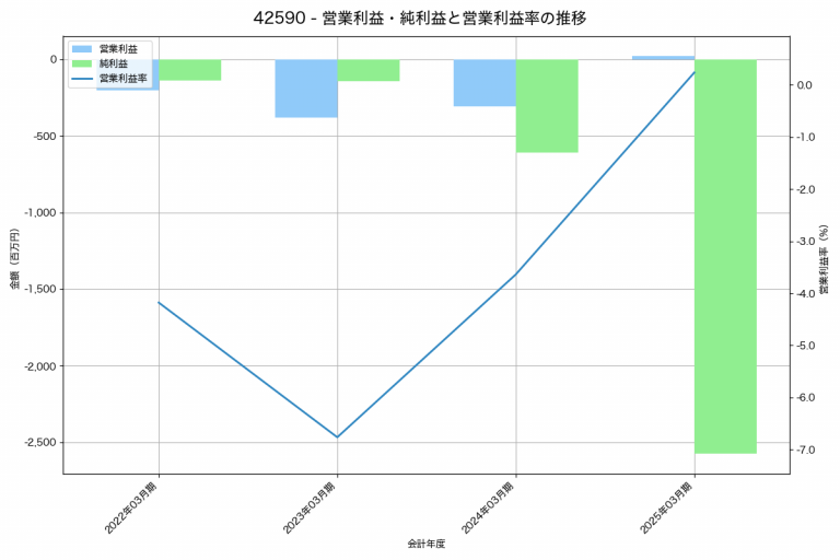 エクサウィザーズの2025年03月期の営業利益は23百万円、営業利益率は0.2%と前年比328百万円増、営業利益率は3.9%pt増です。