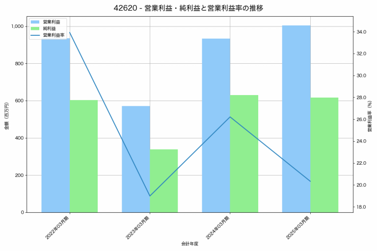 ニフティライフスタイルの2025年03月期の営業利益は1,004百万円、営業利益率は20.3%と前年比71百万円増、営業利益率は5.9%pt減です。