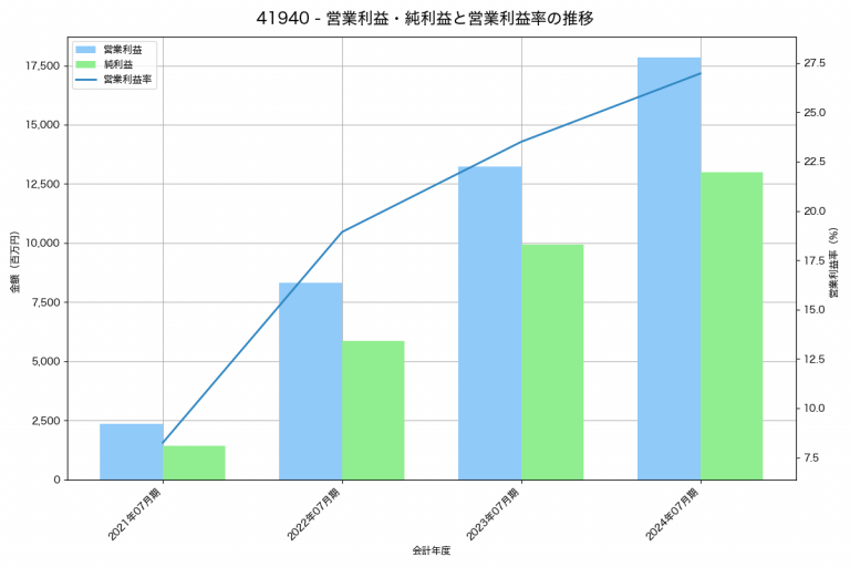 ビジョナルの2024年07月期の営業利益は17,837百万円、営業利益率は27.0%と前年比4,612百万円増、営業利益率は3.5%pt増です。
