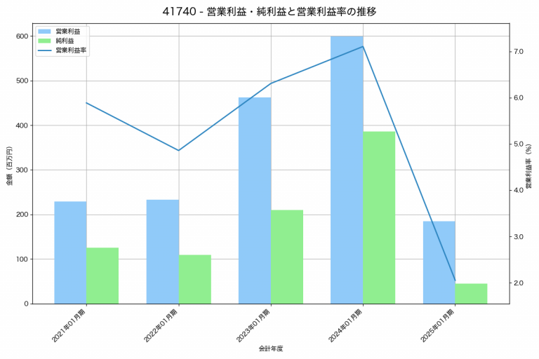アピリッツの2025年01月期の営業利益は185百万円、営業利益率は2.1%と前年比414百万円減、営業利益率は5.1%pt減です。