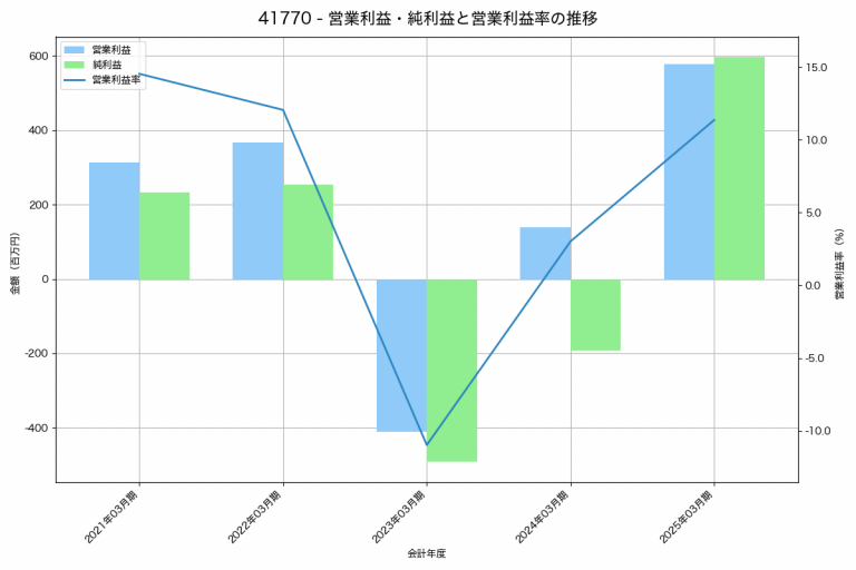 i‐plugの2025年03月期の営業利益は578百万円、営業利益率は11.4%と前年比439百万円増、営業利益率は8.3%pt増です。