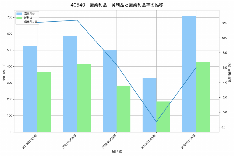 日本情報クリエイトの2024年06月期の営業利益は709百万円、営業利益率は16.0%と前年比380百万円増、営業利益率は7.3%pt増です。