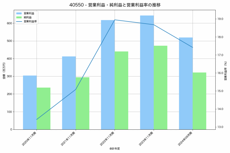ティアンドエスグループの2024年09月期の営業利益は519百万円、営業利益率は17.4%と前年比124百万円減、営業利益率は1.3%pt減です。