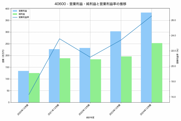rakumoの2024年12月期の営業利益は383百万円、営業利益率は26.5%と前年比80百万円増、営業利益率は3.1%pt増です。