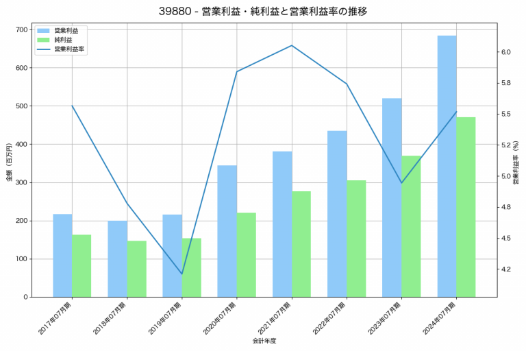 SYSホールディングスの2024年07月期の営業利益は684百万円、営業利益率は5.5%と前年比164百万円増、営業利益率は0.6%pt増です。