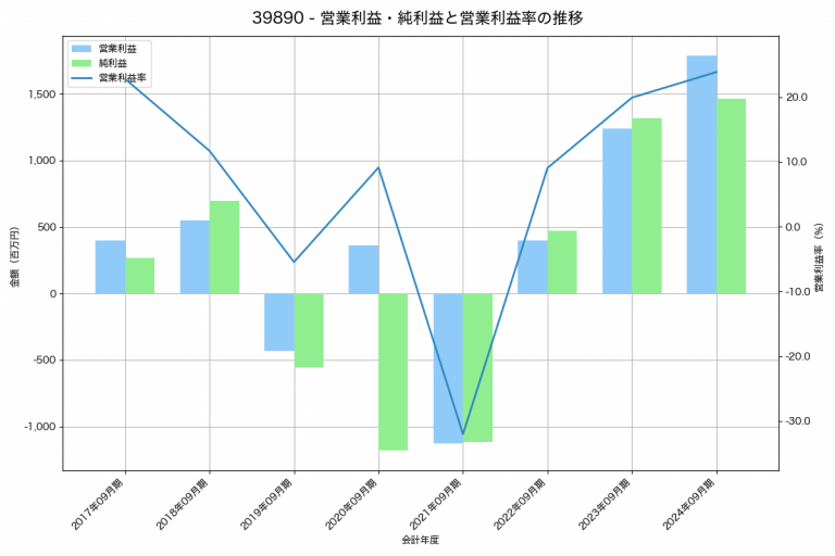 シェアリングテクノロジーの2024年09月期の営業利益は1,790百万円、営業利益率は23.9%と前年比550百万円増、営業利益率は4.0%pt増です。