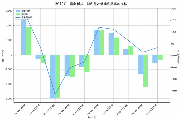ショーケースの2024年12月期の営業利益は-165百万円、営業利益率は-2.7%と前年比120百万円増、営業利益率は2.4%pt増です。