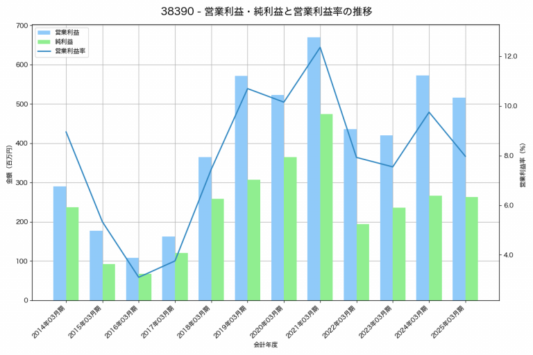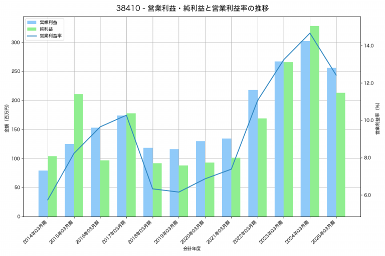 ジーダットの2025年03月期の営業利益は256百万円、営業利益率は12.4%と前年比46百万円減、営業利益率は2.2%pt減です。