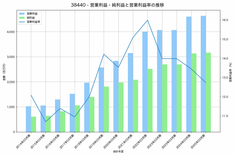 コムチュアの2025年03月期の営業利益は4,630百万円、営業利益率は12.7%と前年比30百万円増、営業利益率は0.7%pt減です。