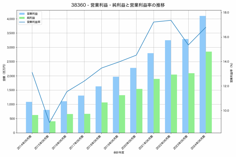 アバントグループの2024年06月期の営業利益は4,099百万円、営業利益率は16.8%と前年比810百万円増、営業利益率は1.4%pt増です。