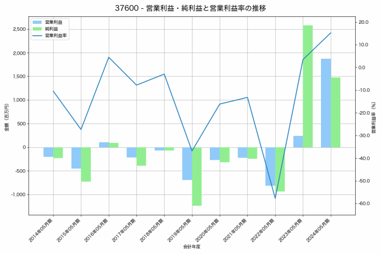サイオスの2024年12月期の営業利益は35百万円、営業利益率は0.2%と前年比243百万円増、営業利益率は1.5%pt増です。