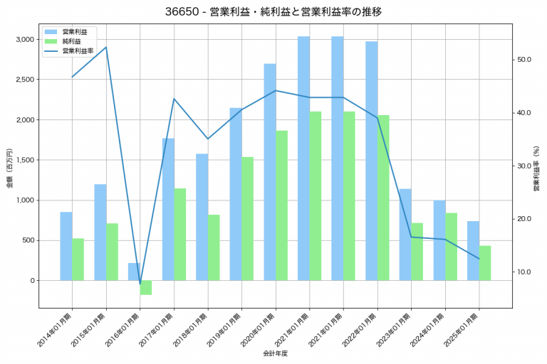 エニグモの2025年01月期の営業利益は739百万円、営業利益率は12.5%と前年比260百万円減、営業利益率は3.6%pt減です。