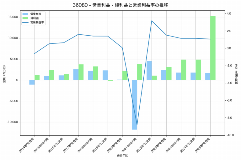 マツオカコーポレーションの2025年03月期の営業利益は433百万円、営業利益率は0.6%と前年比359百万円減、営業利益率は0.7%pt減です。