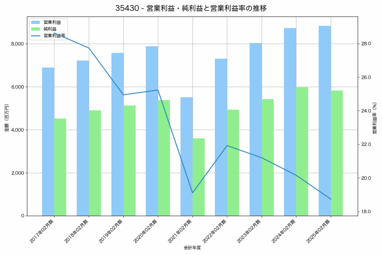 コメダホールディングスの2025年02月期の営業利益は8,820百万円、営業利益率は18.7%と前年比103百万円増、営業利益率は1.4%pt減です。