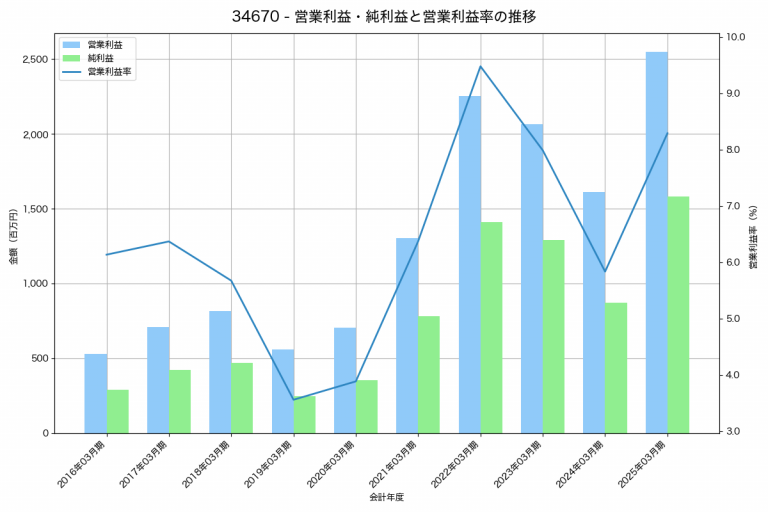 アグレ都市デザインの2025年03月期の営業利益は2,548百万円、営業利益率は8.3%と前年比938百万円増、営業利益率は2.5%pt増です。