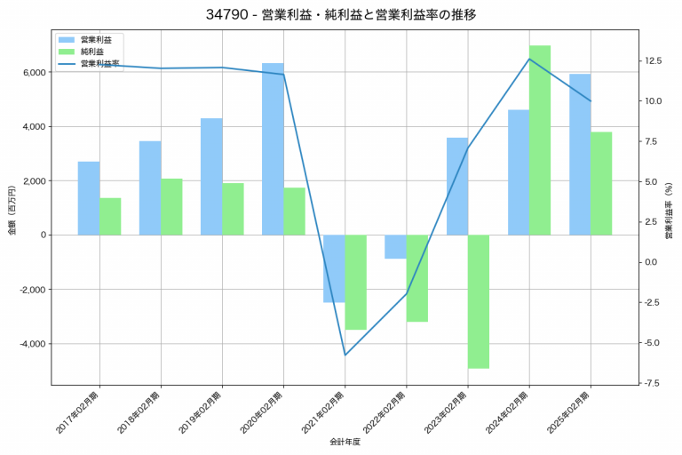 ティーケーピーの2025年02月期の営業利益は5,915百万円、営業利益率は10.0%と前年比1,308百万円増、営業利益率は2.6%pt減です。