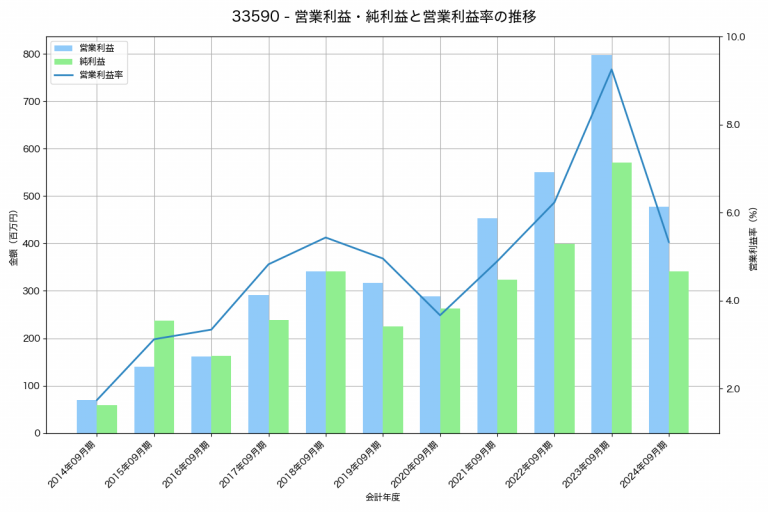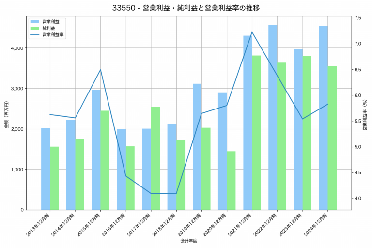 クリヤマホールディングスの2024年12月期の営業利益は4,539百万円、営業利益率は5.8%と前年比568百万円増、営業利益率は0.3%pt増です。