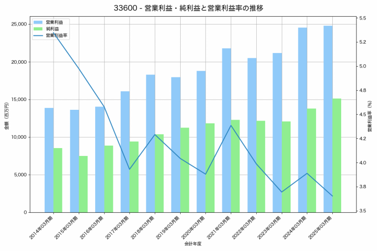 シップヘルスケアホールディングスの2025年03月期の営業利益は24,779百万円、営業利益率は3.7%と前年比244百万円増、営業利益率は0.2%pt減です。