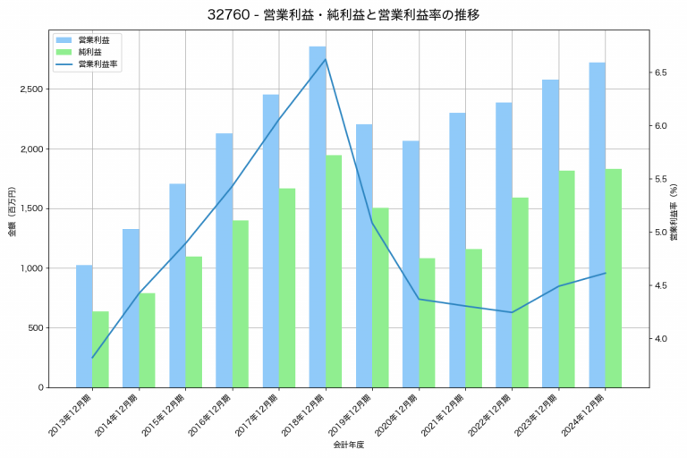 JPMCの2024年12月期の営業利益は2,722百万円、営業利益率は4.6%と前年比146百万円増、営業利益率は0.1%pt増です。