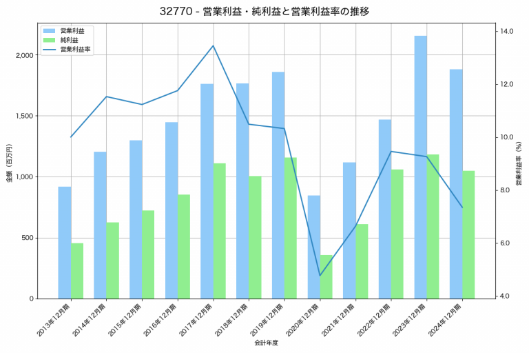 サンセイランディックの2024年12月期の営業利益は1,882百万円、営業利益率は7.3%と前年比273百万円減、営業利益率は1.9%pt減です。