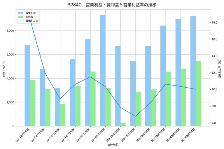 フージャースホールディングスの2025年03月期の営業利益は9,227百万円、営業利益率は10.0%と前年比284百万円増、営業利益率は0.3%pt減です。