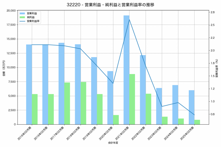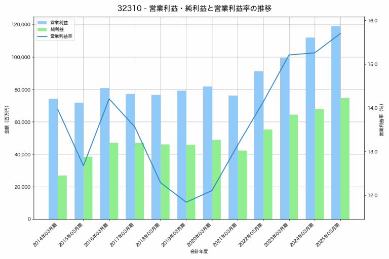 ヨシックスホールディングスの2025年03月期の営業利益は2,328百万円、営業利益率は10.2%と前年比6百万円増、営業利益率は0.8%pt減です。