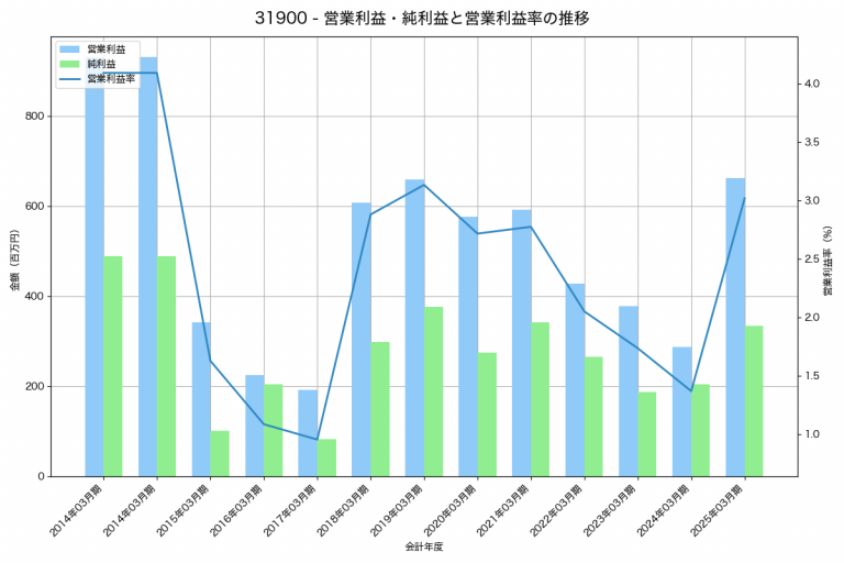 ホットマンの2025年03月期の営業利益は661百万円、営業利益率は3.0%と前年比374百万円増、営業利益率は1.7%pt増です。