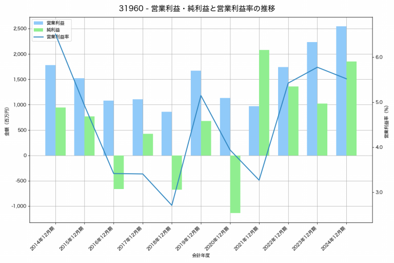 ホットランドホールディングスの2024年12月期の営業利益は2,545百万円、営業利益率は5.5%と前年比310百万円増、営業利益率は0.3%pt減です。