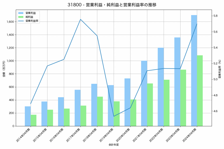 ビューティガレージの2024年04月期の営業利益は1,700百万円、営業利益率は5.7%と前年比343百万円増、営業利益率は0.6%pt増です。