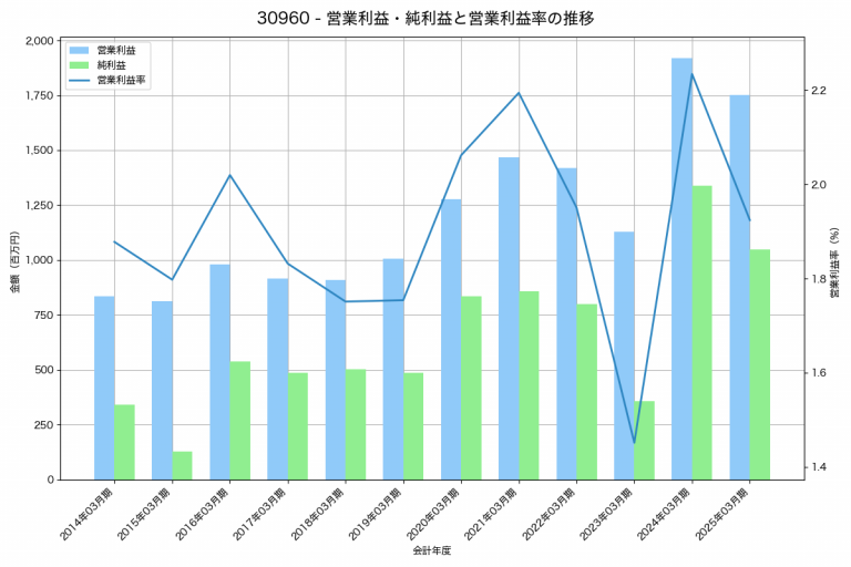 オーシャンシステムの2025年03月期の営業利益は1,752百万円、営業利益率は1.9%と前年比167百万円減、営業利益率は0.3%pt減です。