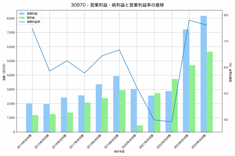 物語コーポレーションの2024年06月期の営業利益は8,165百万円、営業利益率は7.6%と前年比963百万円増、営業利益率は0.2%pt減です。