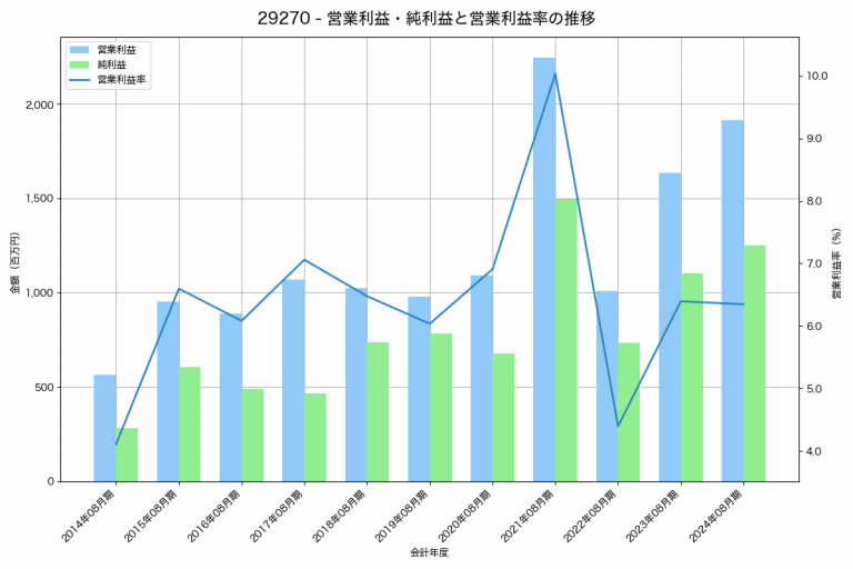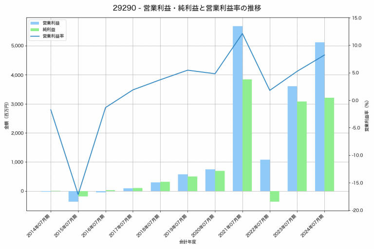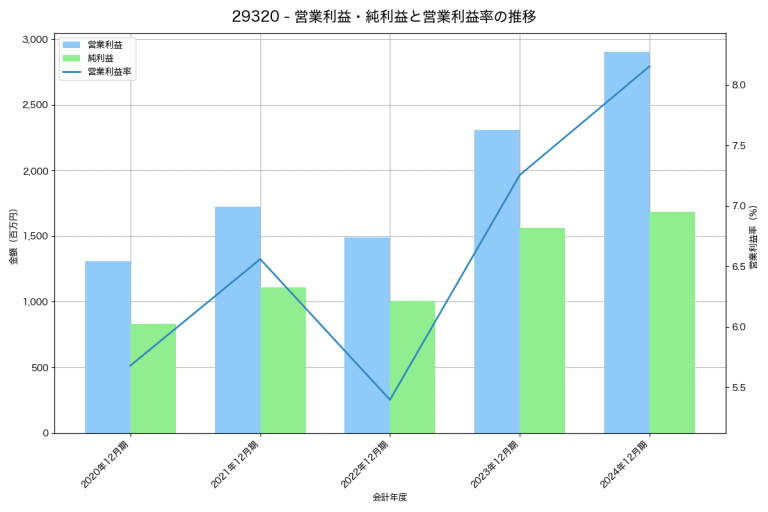 STIフードホールディングスの2024年12月期の営業利益は2,901百万円、営業利益率は8.2%と前年比595百万円増、営業利益率は0.9%pt増です。