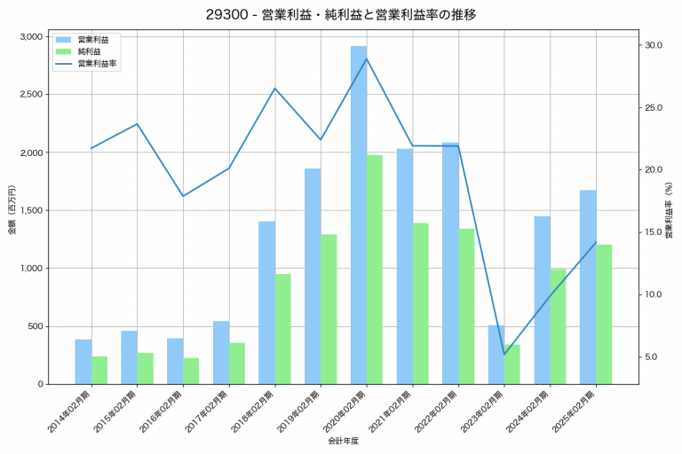北の達人コーポレーションの2025年02月期の営業利益は1,675百万円、営業利益率は14.2%と前年比226百万円増、営業利益率は4.3%pt増です。
