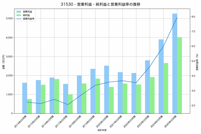 [3153] 八洲電機 の財務・株価分析レポート八洲電機の2025年03月期の営業利益は5,253百万円、営業利益率は8.0%と前年比1,359百万円増、営業利益率は1.9%pt増です。 apitokyo2025年7月2日